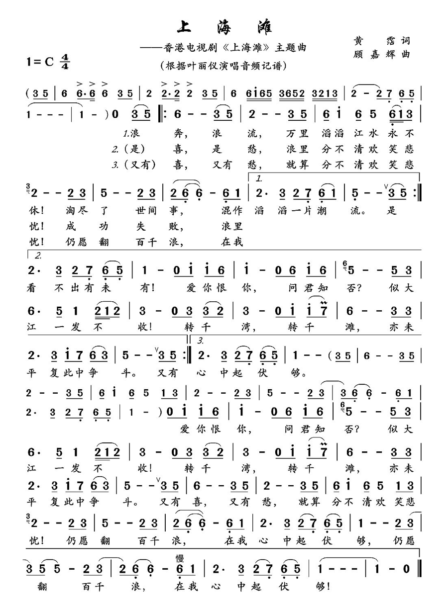 内容简介:上海滩简谱